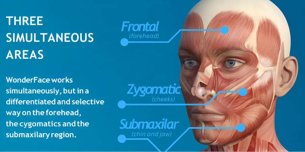 WonderFace är en avancerad ansiktsföryngrande behandling som kombinerar NMS-teknologi för att stimulera och tona ansiktsmusklerna med RF-energi som värmer de djupare hudlagren och ökar kollagenproduktionen.